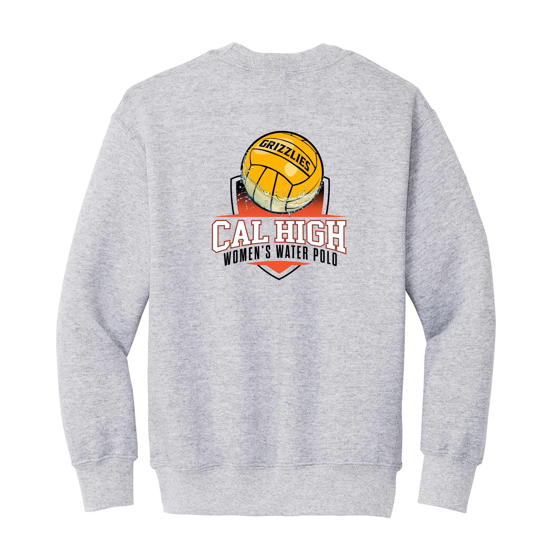Classic, cozy, and full of team pride. Crafted from a soft 50/50 cotton-poly blend with a smooth air jet yarn finish, this crewneck is built for comfort that lasts. Featuring the Grizzlies water polo ball on the front and the bold Cal High Women’s Water Polo logo on the back, it’s the perfect layer for cool mornings, spirit days, or post-practice hangouts.