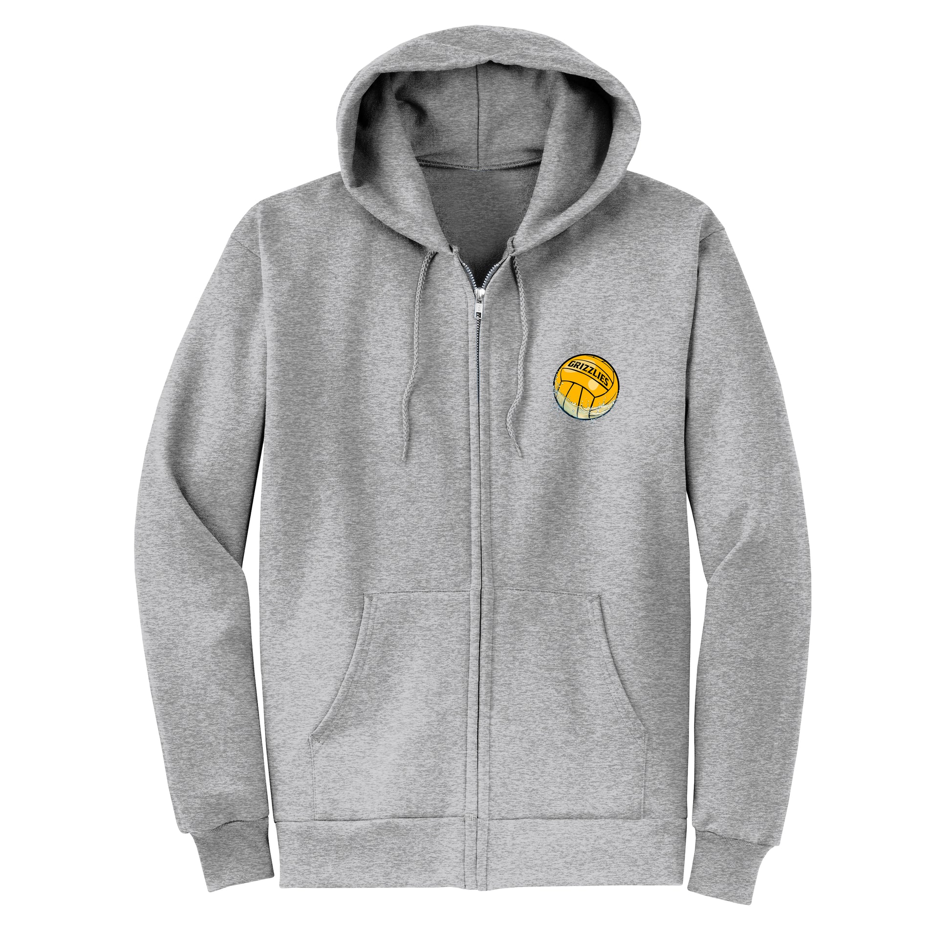 Zip into team spirit. Made from a soft 7.8-ounce 50/50 cotton-poly fleece, this hoodie is built for comfort on the go. Featuring the Cal High water polo ball on the front and the bold team logo on the back, it’s finished with a durable YKK zipper, roomy pockets, and a no-fuss hood — perfect for practice, travel, or showing off Grizzlies pride anywhere.