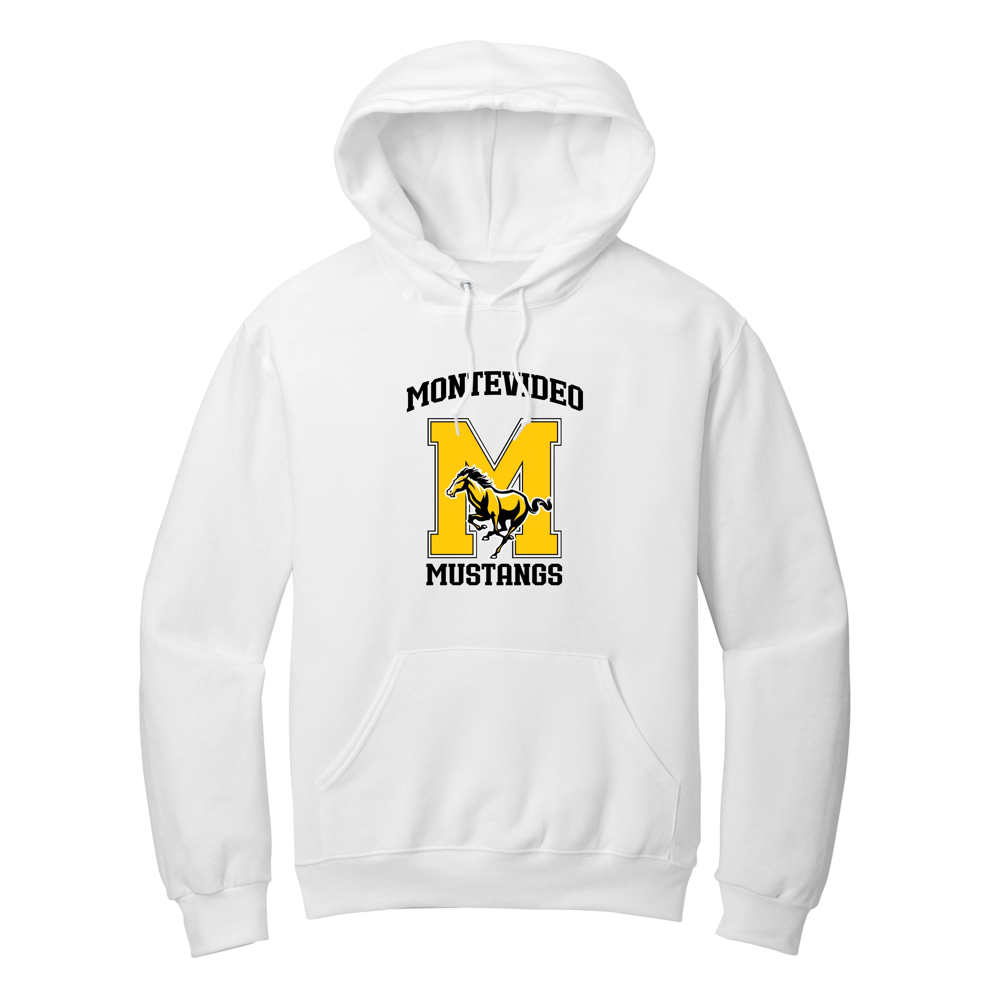 A timeless favorite, this pullover hoodie is made from a soft, pill-resistant 50/50 cotton-poly fleece that’s built for everyday comfort. Featuring the bold Montevideo Classic logo in a clean, college-style design, it’s cozy enough for chilly mornings, late-night homework, and every Mustang moment in between. A percentage of all sales will be donated to support Montevideo PTA.