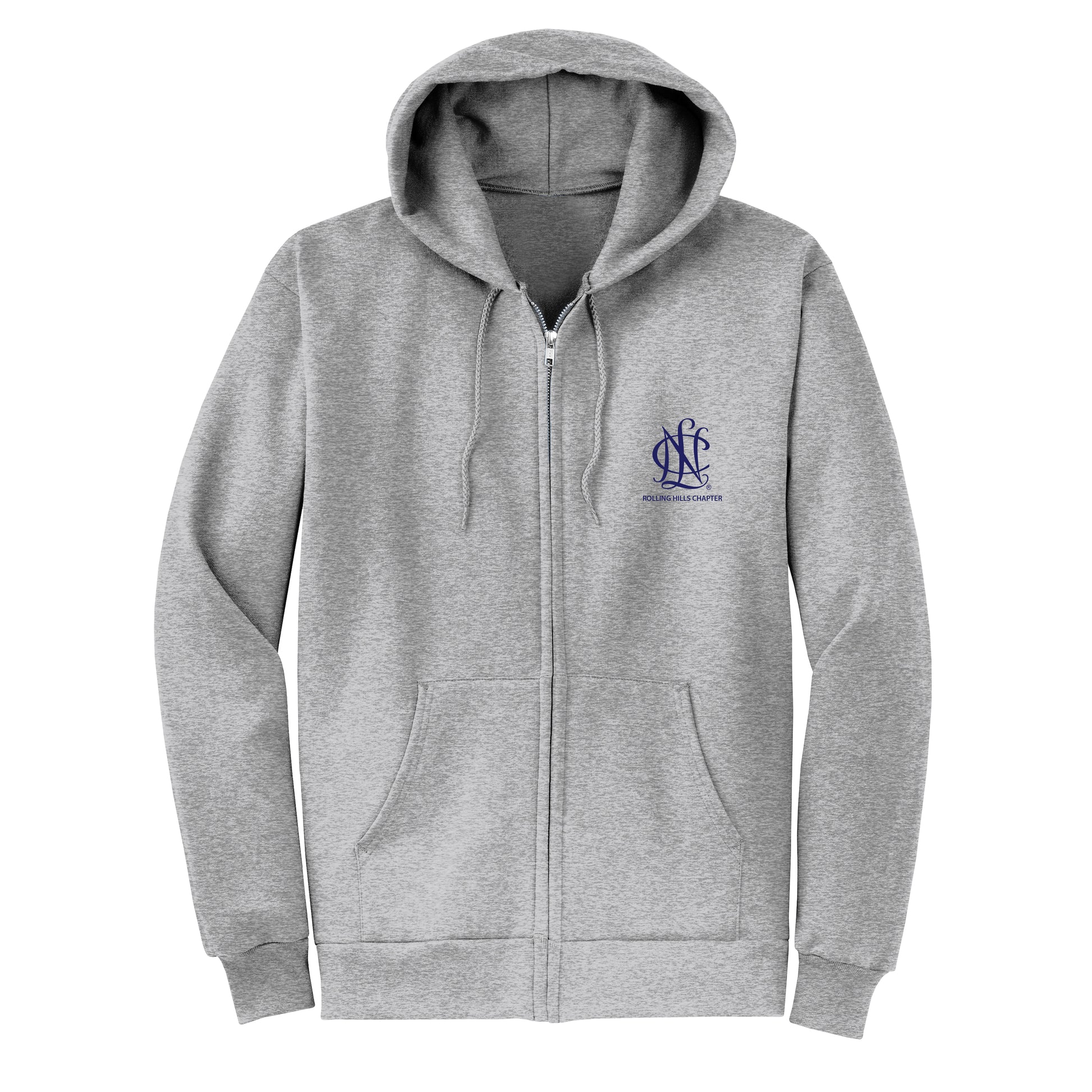 Layer up with comfort and confidence in this NCL full-zip fleece hoodie. Crafted from a cozy 7.8-ounce cotton-poly blend, it offers the perfect balance of warmth and ease. With a no-fuss hood, durable YKK metal zipper, and spacious front pockets, it’s made for busy days on the go, whether you're volunteering, attending events, or just repping your chapter in style.