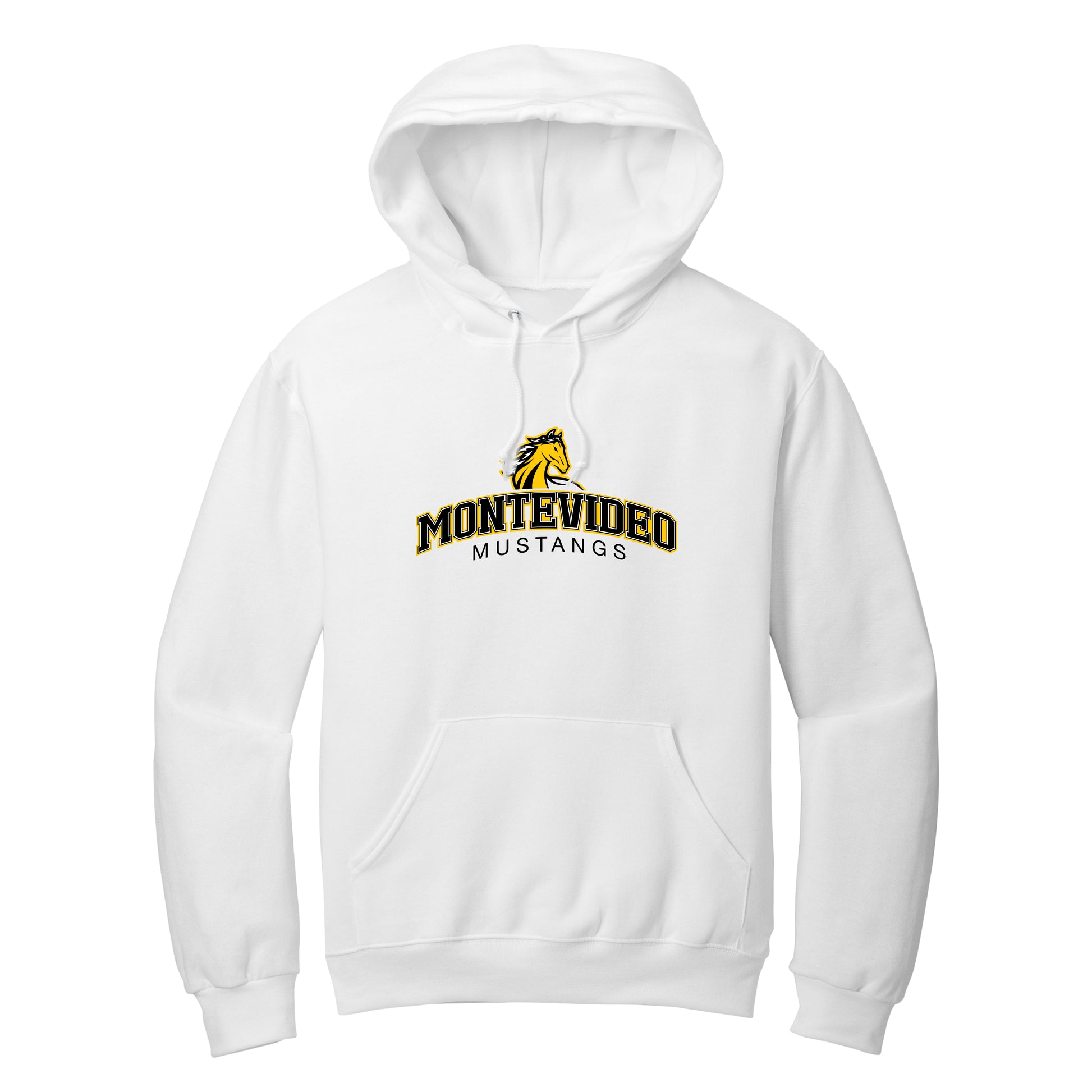 Simple, cozy, and always in style. Made from a soft, pill-resistant 50/50 cotton-poly fleece, this pullover hoodie features the Montevideo Classic logo front and center. Perfect for chilly mornings, spirit rallies, and weekend lounging — it’s a timeless way to wear your Mustang pride. A percentage of all sales will be donated to support Montevideo PTA.